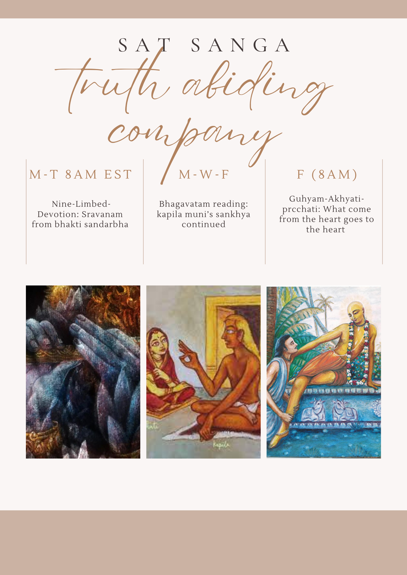 In our sat-sanga reading happening three days a week we shall continue our look at the 3rd canto Kapila-Muni's devotional sankhya.